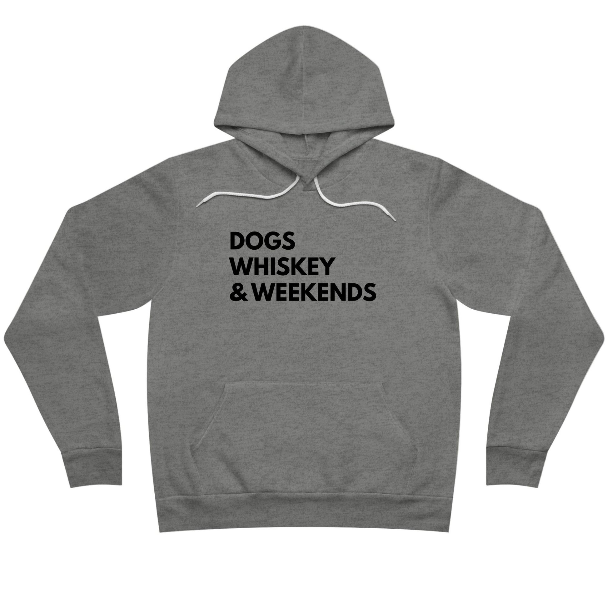 Unwind in ultimate comfort with our 'Dogs, Whiskey & Weekends' hoodie. Made from ultra-soft sponge fleece in a classic gray, this hoodie is perfect for dog lovers who cherish laid-back weekends with their pups and a glass of whiskey in hand. Designed for warmth and style, it’s ideal for casual outings, cozy nights at home, or brisk morning walks with your furry friend. Whether you're hitting the dog park or just kicking back, this hoodie is your new weekend essential.